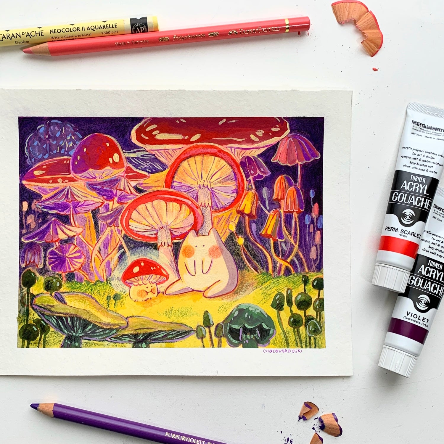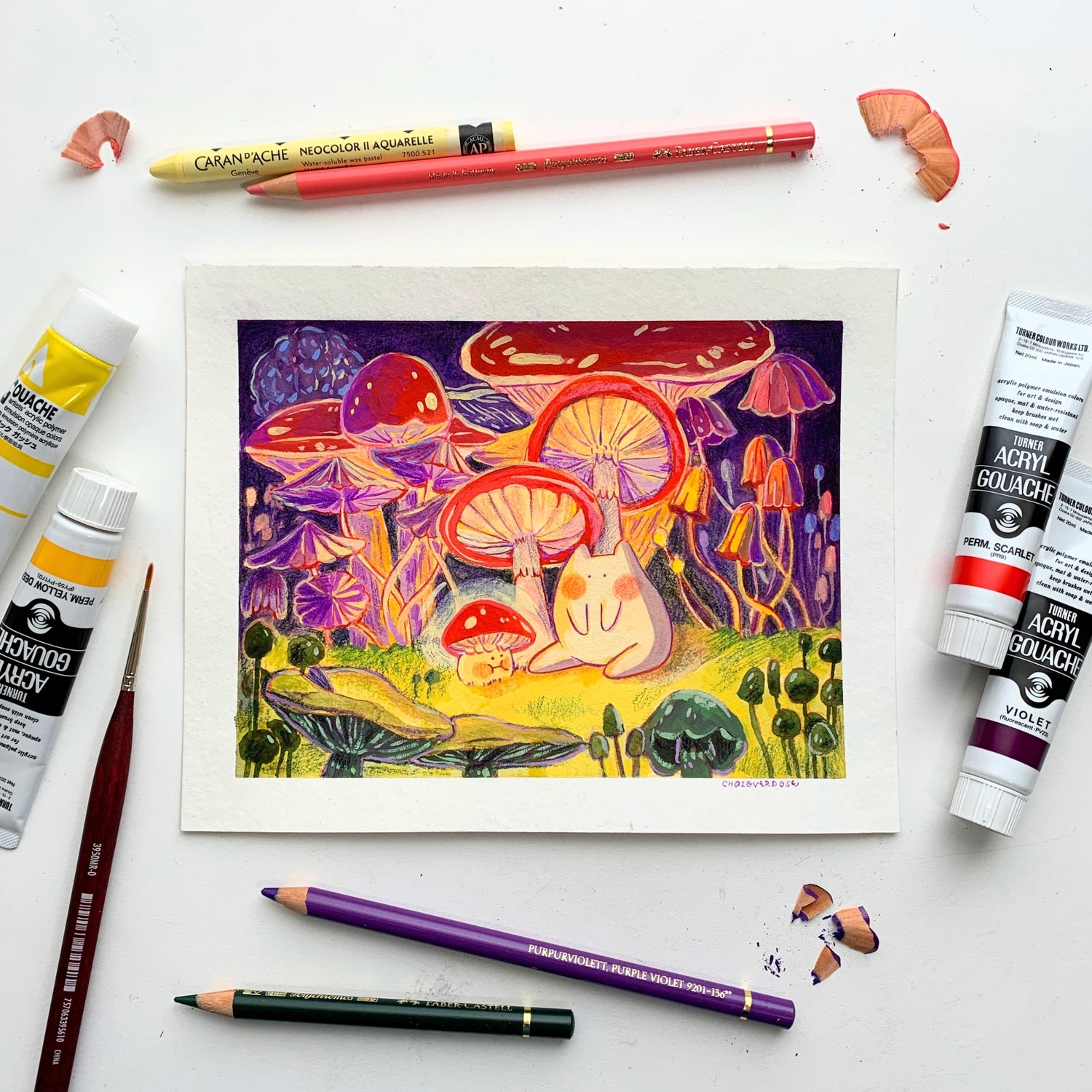 Original artwork: Acrylic gouache, watercolors, color pencils, pastel